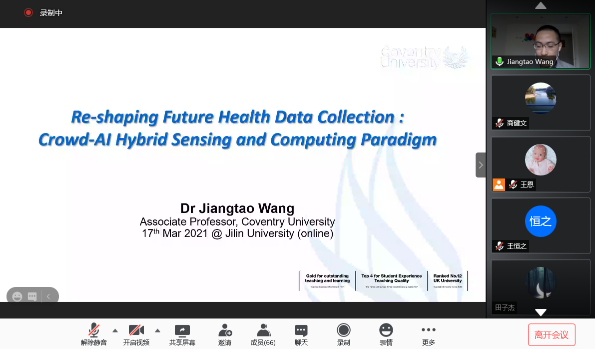 邀请,以线上形式作了题为“重塑未来人群健康数据的收集:Crowd-AI混合感知和计算范例”的学术讲座。
