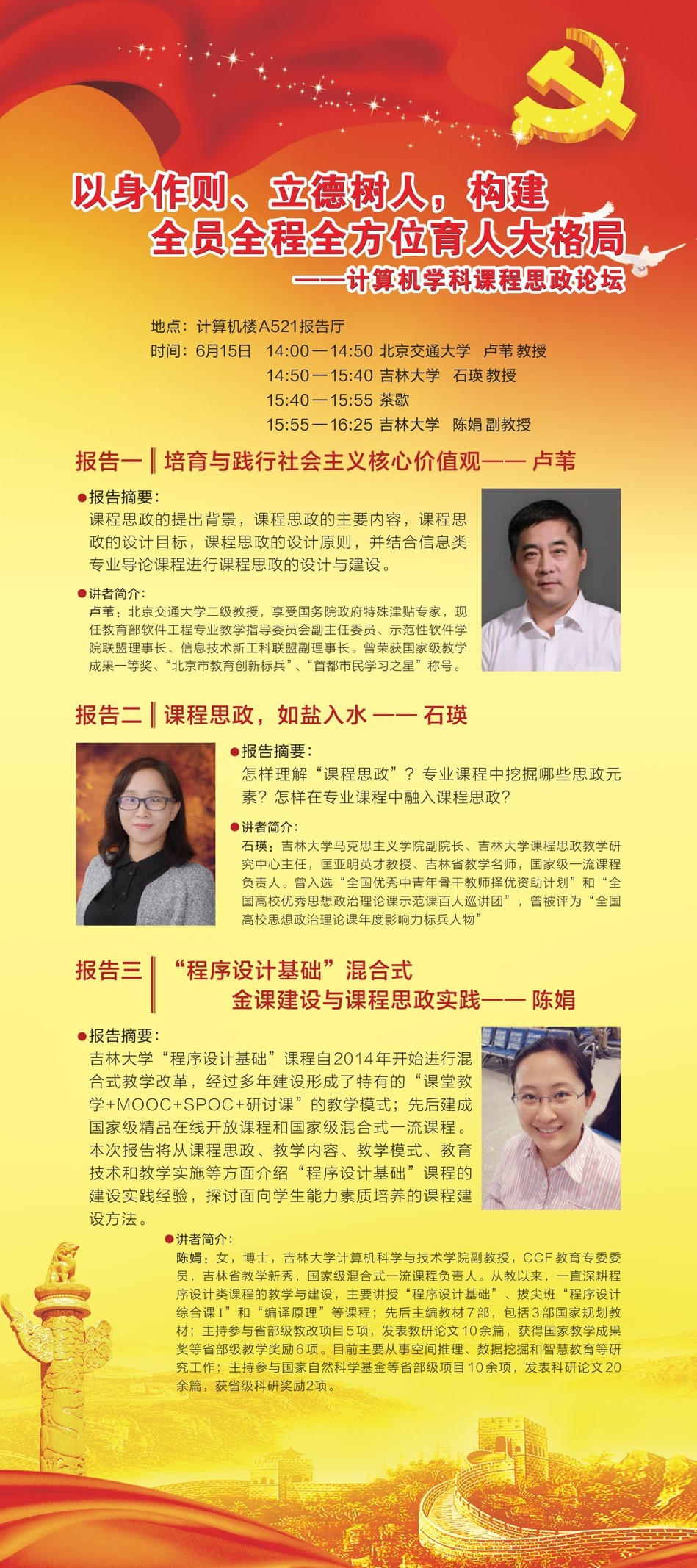 、软件学院在计算机楼A521报告厅联合举办了“以身作则、立德树人,构建全员全程全方位育人大格局”为主题的计算机学科课程思政论坛,台湾三级
