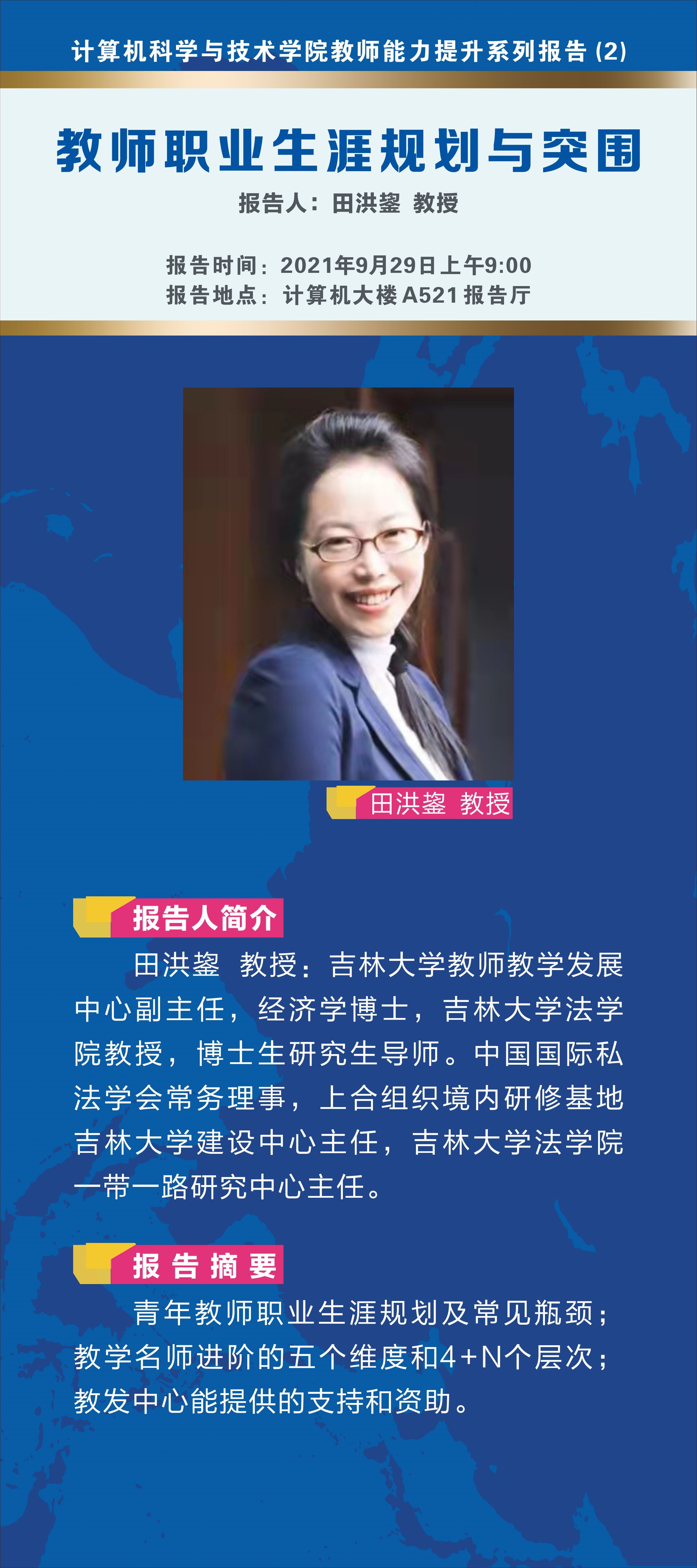 中心校区计算机楼A521报告厅作了题为“教师职业生涯规划与突围”的专题报告,这是计算机学科教师能力提升系列报告的第二场报告,报告由台湾三级