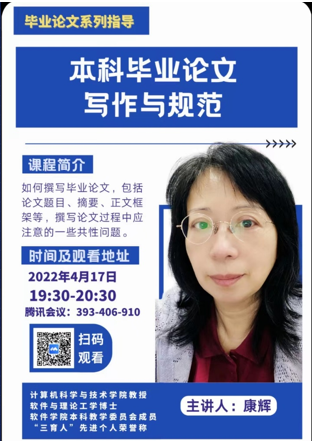 教授康辉老师,在腾讯会议作了题为“本科毕业论文写作与规范”的专题讲座 这是学校关于毕业论文系列指导的第六期活动,也是本科生综合素质提升计划系列报告的第十一场。计算机学院共计500余名本科生在线参加了此次活动。
