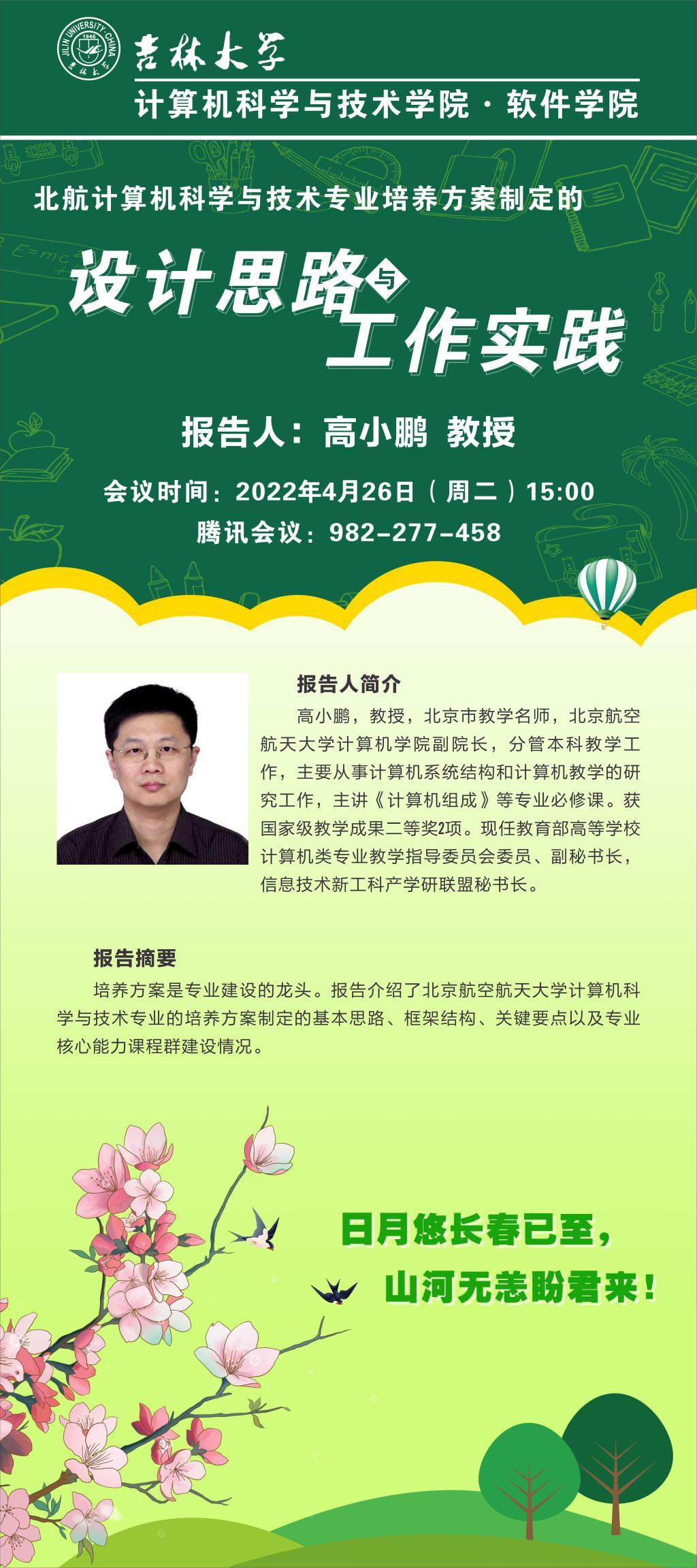 2022年4月26日(星期二)下午15:00,北京航空航天大学计算机学院副院长高小鹏教授应台湾三级