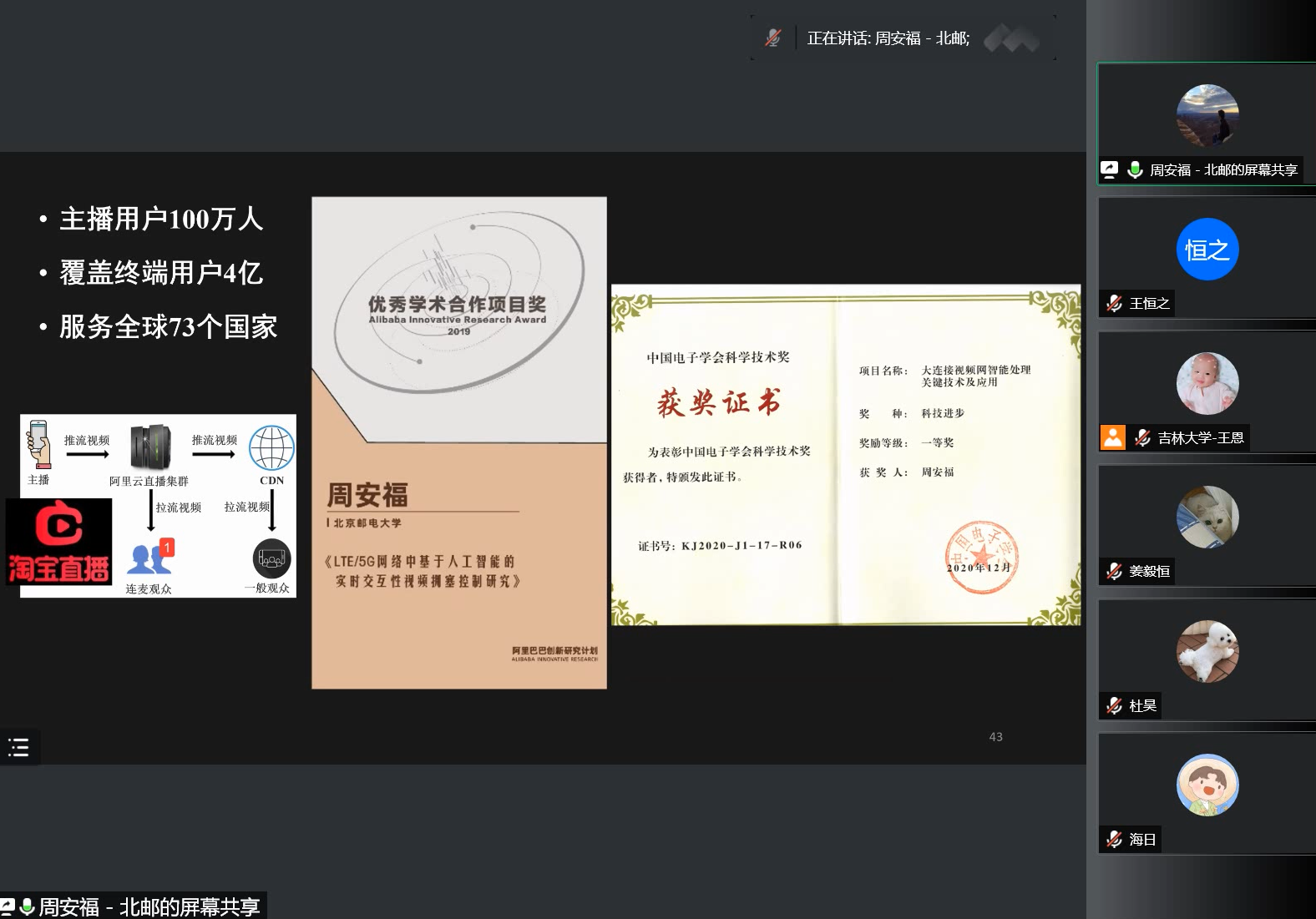 邀请,利用腾讯会议作了题为“基于强化学习的低延迟视频传输研究”的学术报告。台湾三级