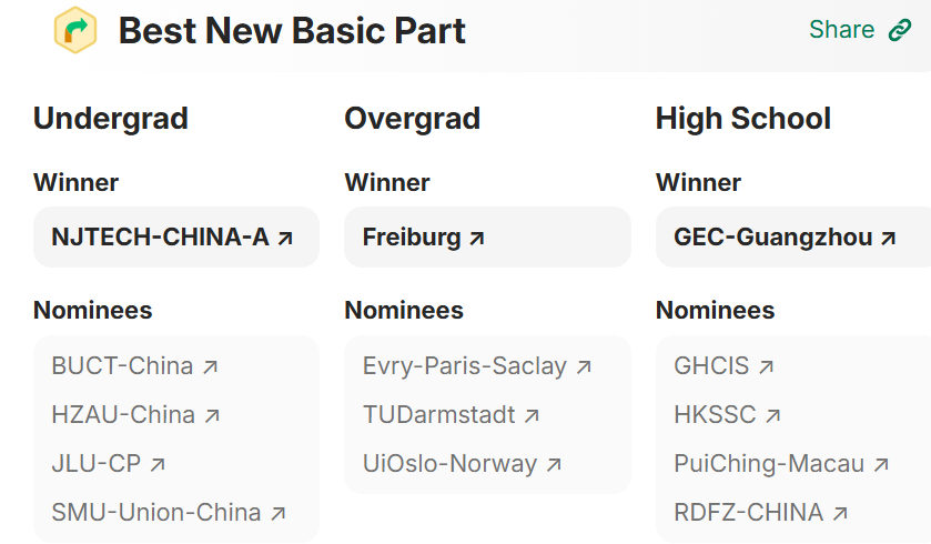 和公共卫生学院联合指导的JLU-CP团队再次荣获全球金奖,并赢得最佳新基本部件奖提名(全球前五)和最佳教育奖提名(全球前五)。台湾三级