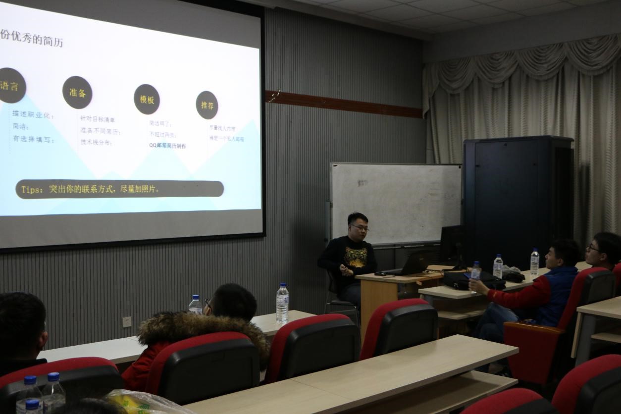 本次活动主要面向计算机学院和软件学院准备求职的研究生。活动分为了以下几个环节:就业知识问答比赛、求职经验交流及问答互动。所有入场的同学带着自己的想法和疑问,都可参与其中。学长们分享了他们的求职历程,介绍了IT行业互联网公司、国企央企等的相关情况,通过他们的介绍,让同学们对求职之路有了更加深入的认识,包括准备过程、求职简历、面试流程等。学长们还给予了师弟师妹宝贵的建议,希望大家能尽快确定自己的求职规划,这样对找工作是很有帮助的。在问答互动环节中,对某一方面存在疑问的,学长们也会进行耐心的解答。在所有环节结束后,按照同学们的分数进行排名,颁发奖品。