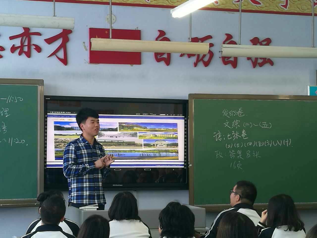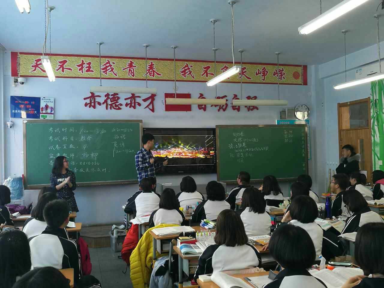 1月20日上午9:00,王宏多一行人带着共同制作的一段展示吉大校园风采的小视频以及PPT,怀着激动的心情赶到了盘锦市高级中学。在简明扼要的开场白后,王宏多同学播放了视频,为同学们展示了台湾三级