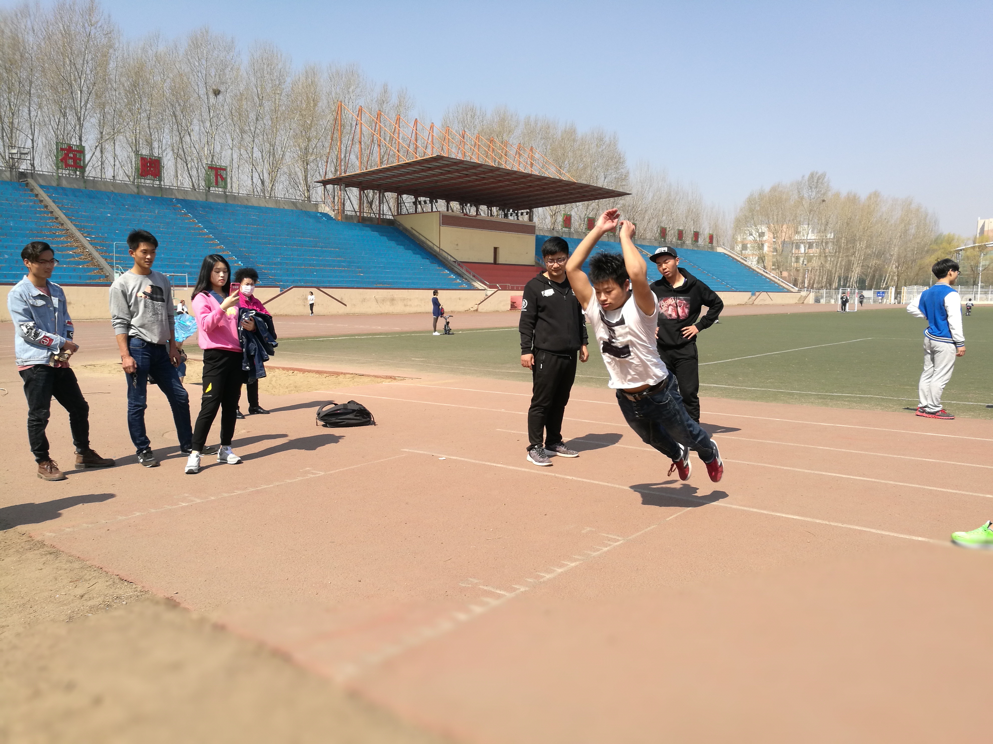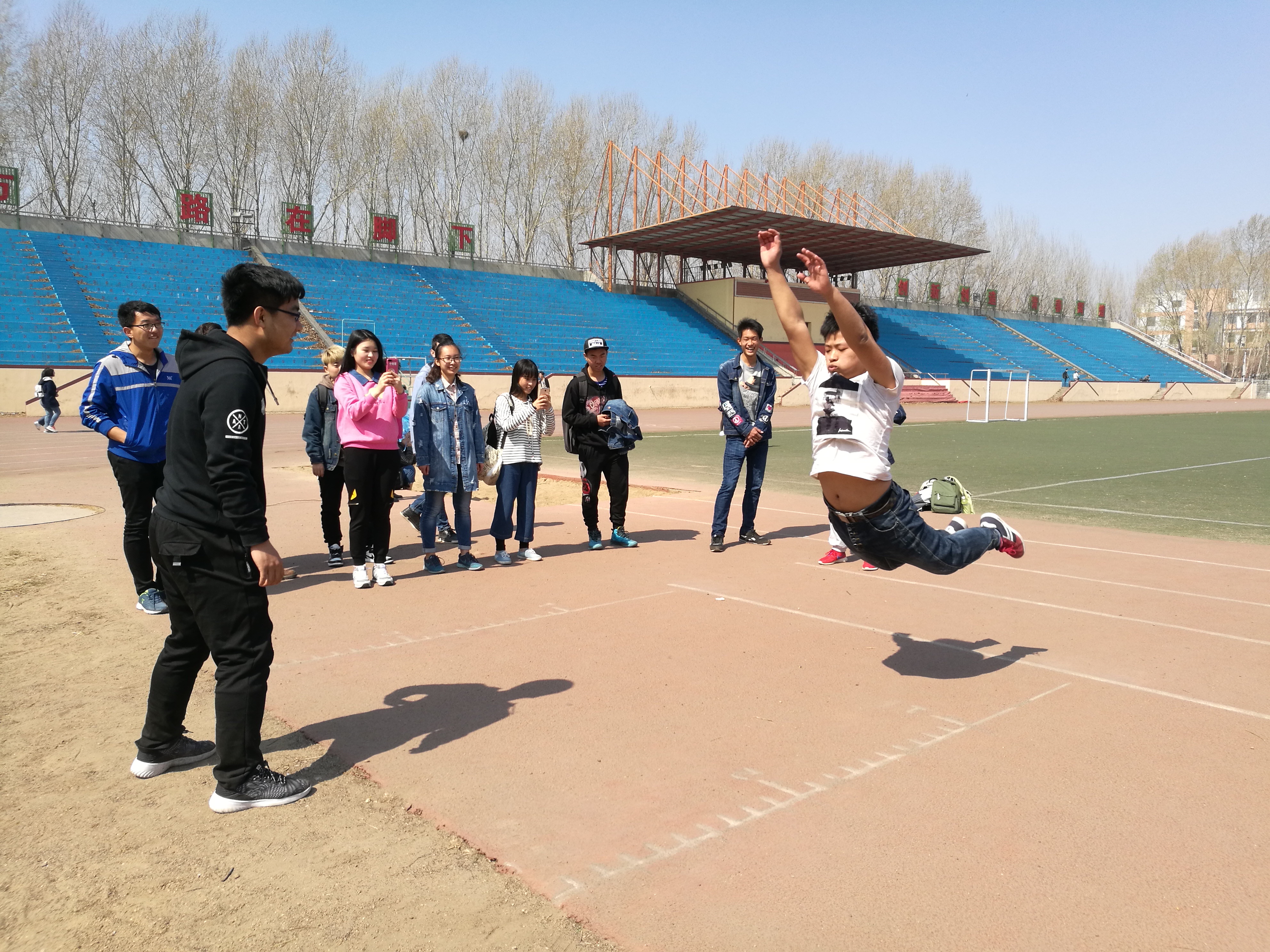 体育场举办了立定跳远比赛,计算机学院的运动员积极参赛,比赛精彩激烈,洋溢青春气息。